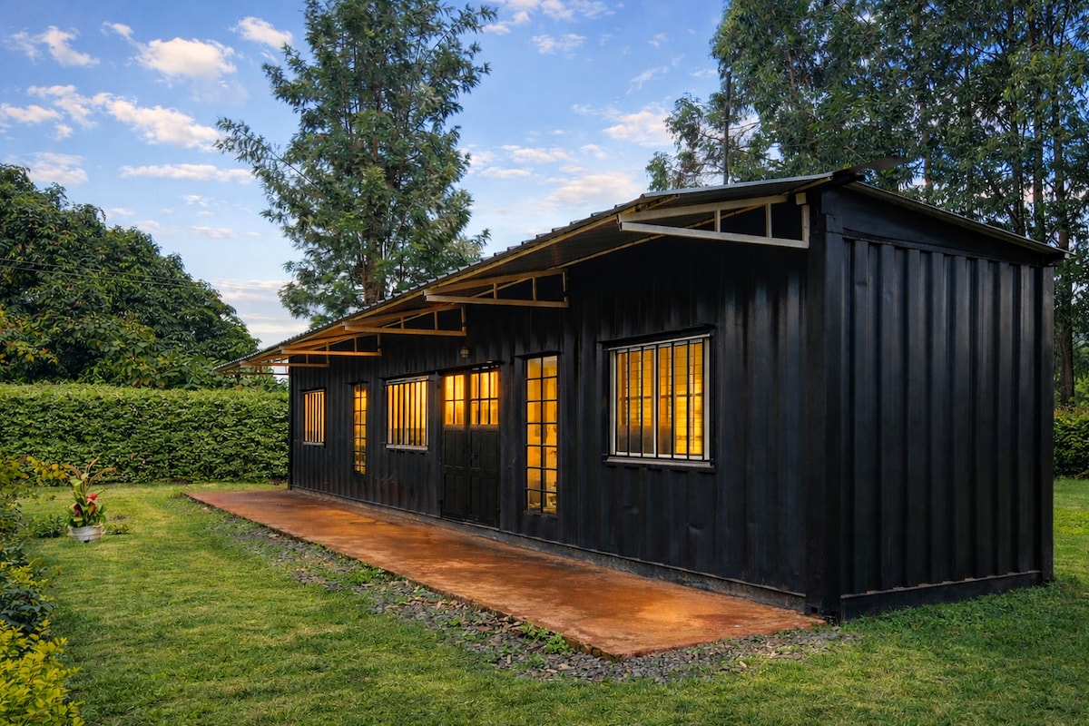 Escape to a peaceful countryside hideaway where modern design meets nature. This stylish container home is tucked away in a lush, leafy setting surrounded by tall trees and fresh greenery, creating the perfect atmosphere for rest, privacy, and quiet relaxation. The property is located in a quiet, green neighborhood that offers both privacy and easy access to nearby towns. Perfect for couples, business travelers, or anyone looking for a peaceful getaway or escape from busy city life.
