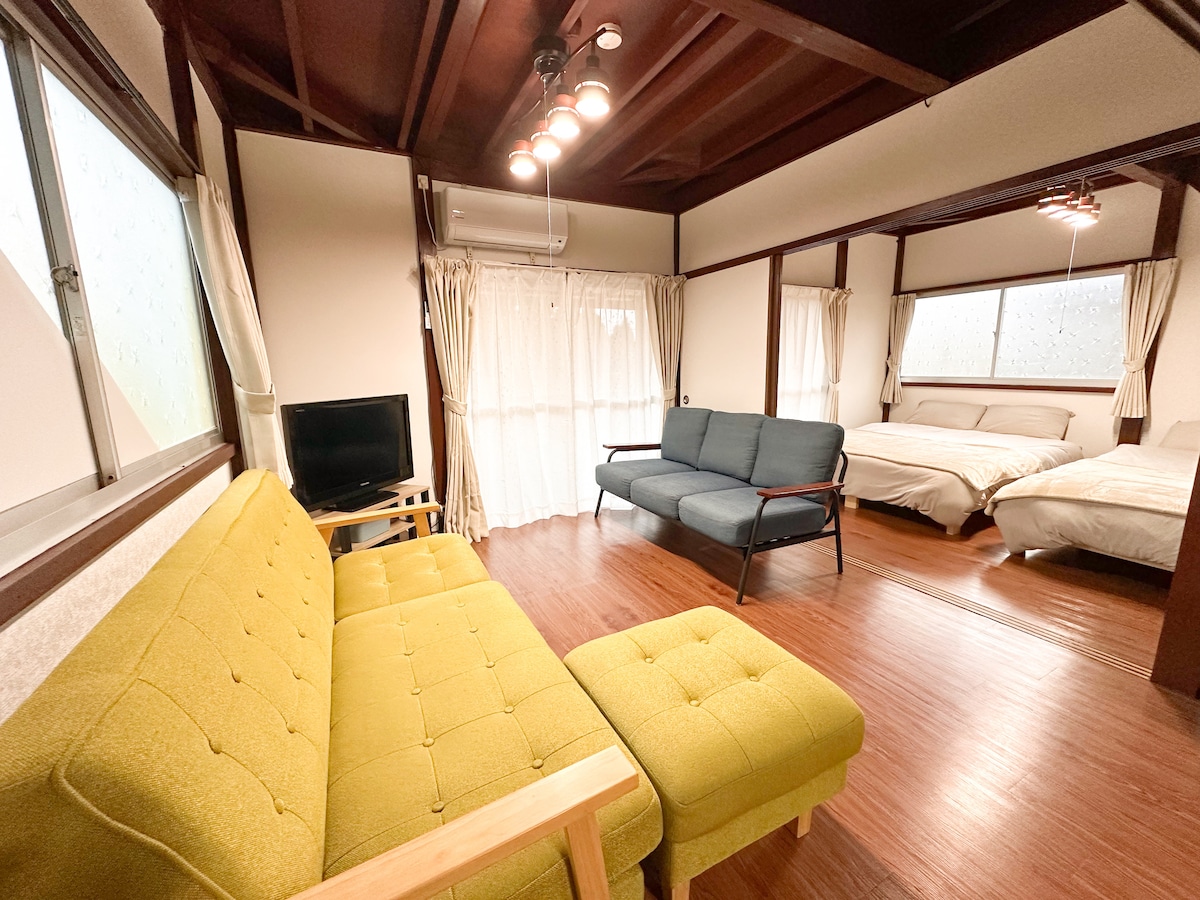 Exclusive stay for one group per day, up to 8 guests. This renovated family home offers warmth and comfort, perfect for private time with loved ones. Located in Hinatayama, the birthplace of family-style private hot springs, where history and relaxation meet. Nearby are Kagoshima Shrine. We hope you enjoy the unique charm and healing spirit of this area. ※Please check the house rules before your stay.