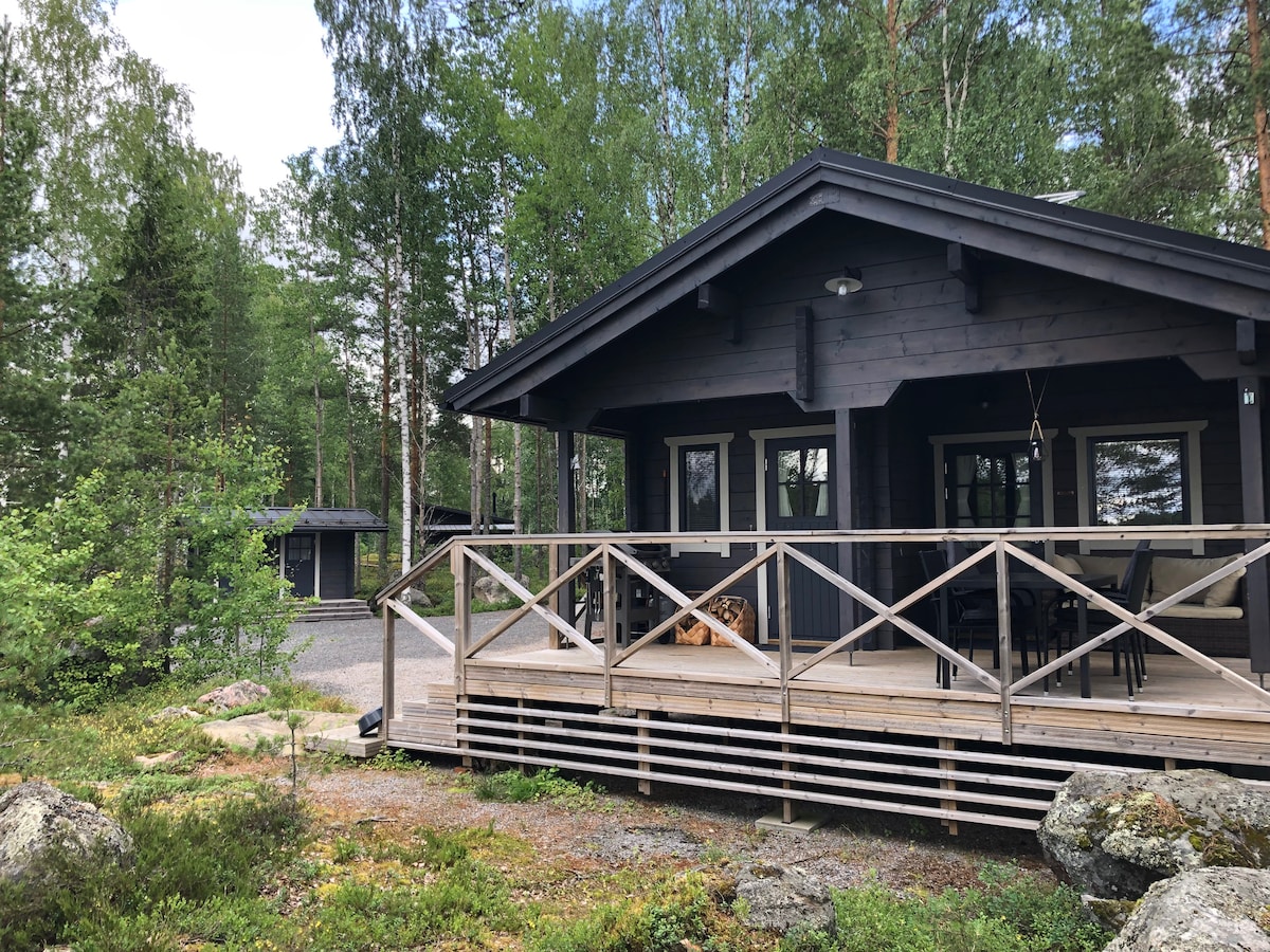 Pond, clean water, sand bottom, amazing Finnish sauna. There is a queen size bed and a sofa which fits two people. There is a seperate entrance to the sauna, which has a shower and bathtub. The sauna is used also by us. We have deer that are kept in a fenced in area.