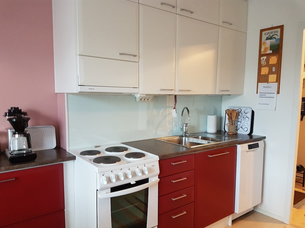 This cozy apartment is located in the heart of Pori city center. Everything is near. Just opposite the apartment is a free parking area. Free wifi is included. The entire flat is in your use - including your own balcony. The apartment has 1 bedroom with a double bed (140 cm). In the living room there is a normal sofa (not a pull-out couch/ ei vuodesohva). Sheets and towels are included in the price.