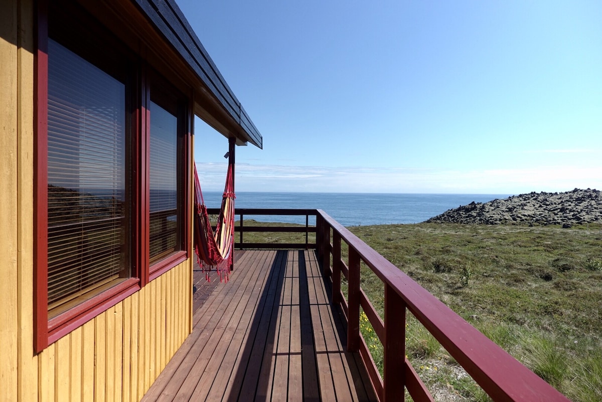 New renovated cabin (2021) is located nearby the ocean with lovely oceanview, only few miles from the historical Snæfellsjokull glacier. Good comfort in the house. It is equipped with a big fireplace and outdoor jacuzzi on the 100 sqm terrace Varieties in outdoor walking tours to experience the nature. Such as lava, glacier, mountains, caves, waterfalls and old fishing villages. Historical place with amazing geology as well as rich birdlife. The culture of this region is worth the experience.