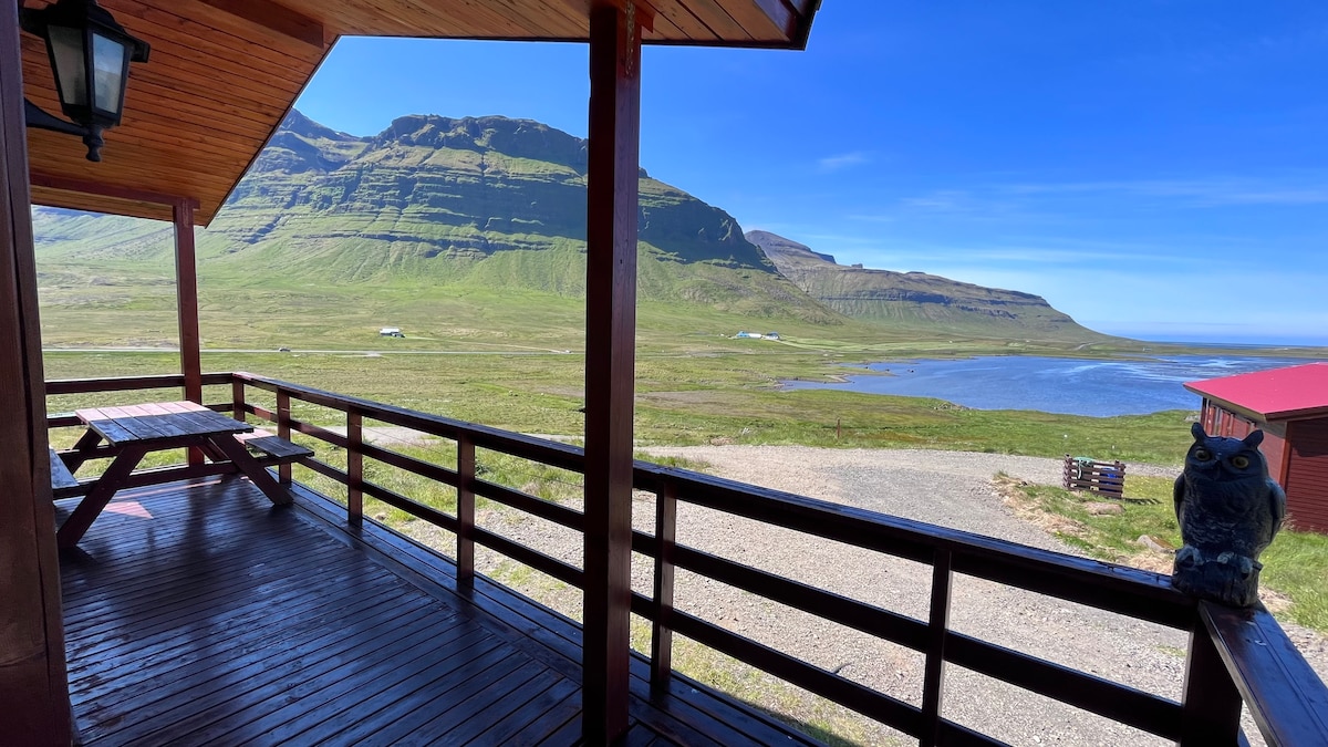 Our peaceful, orca-themed apartment offers a spectacular view over Grundarfjörður and famous Mt. Kirkjufell. In the summer you can watch colorful sunsets and in the wintertime witness the Northern lights in clear skies. The apartment is detached from the main building and includes a well-equipped kitchen (yes, there's coffee and tea), a private bathroom, as well as comfortable beds and a seating area for two people. Supermarket, clinic, swimming pool, and waterfront in walking distance.