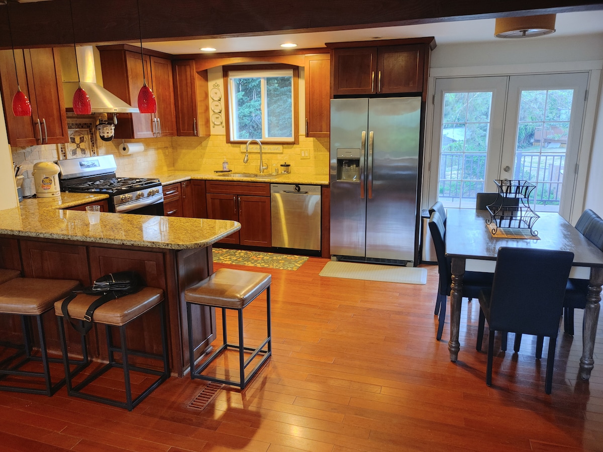 Thoughtfully decorated boho respite nestled in the quiet section of Kirkland. Location, comfort, and style make this an ideal home away from home! Our space is perfect for your relaxing retreat, stress-free work trip, or a base for your fun NW getaway with your whole family. We are a minute's drive away from the Kirkland Waterfront and the newly completed Kirkland Urban commercial and retail center, and a 10-minute drive from the world-renowned Woodinville wine experience!