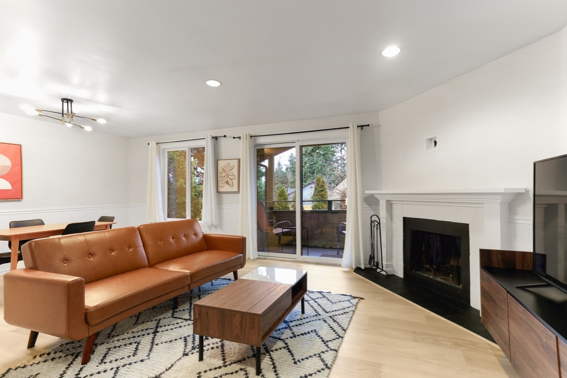 Home away from Home. Attractively furnished 1-bedroom plus den unit, nestled in a quiet triplex just blocks from everything Kirkland has to offer. This home is spacious and stylish with a fully equipped kitchen, washer and dryer, and walk-in closet. The den is complete with a desk and high-speed Wi-Fi. The 55” Smart TV is equipped with Roku for easy streaming. The bedroom is inviting, with a king-size bed and comfortable bedding. Please note: There are stairs leading from the reserved parking.