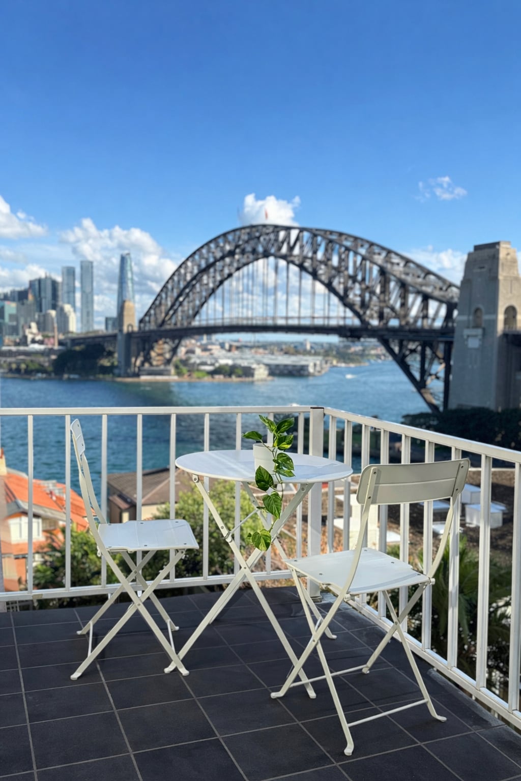 Enjoy the feel of this peaceful and sunny accommodation. This studio offers a private balcony with outdoor seating to enjoy one of the best views of the Opera House and Harbor Bridge. Bright and peaceful, our studio is close to cafes, restaurants, galleries, heritage houses and beautiful walks with views of the bridge. Steps from Luna Park 5 minutes from the train station. Enjoy it!!! Sun, stars and Opera from our Balcony.