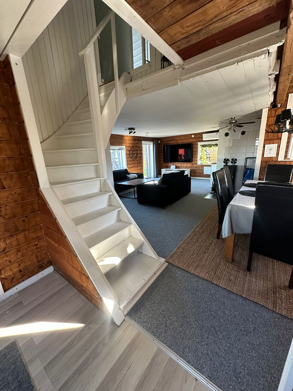 Beläget precis vid stranden till Torne älv hittar ni vårt hus, bara 4 km från Jukkasjärvi och Icehotel. Från vardagsrummet har du en underbar utsikt över älven med Jukkasjärvi i bakgrunden, och på en stjärnklar kväll kan du (med lite tur) se norrskenet från vardagsrummet eller altanen utanför. På sommaren kan du njuta av midnattsolen och se älven svepa förbi bara 10 meter från altan. Naturen ligger bara runt hörnet, så på med vandringsskorna och ge dig ut på härliga promenader. Välkomna!