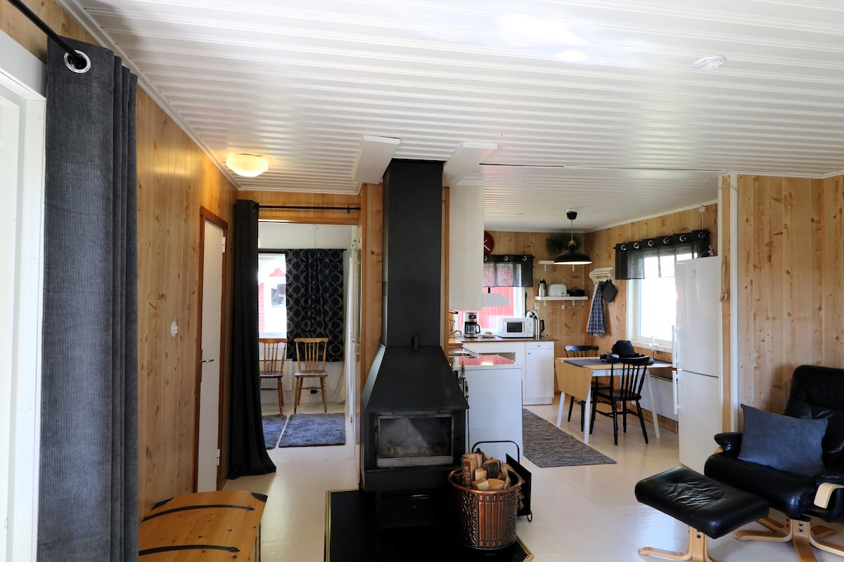 The cabin is located in a small village called Moskojärvi in swedish Lapland. The cabin has electricity. But no running water. Water will be provided in canisters. There isn't a bathroom, but it has a wood heated sauna, were you can shower. The toilet is a outside "dry" toilet. The kitchen has a fridge and a induction stove. The cabin has a woodstove. We provide wood. But we don't heat up the cabin. It's located next to my house were I live with my boyfriend and our 23 husky's.