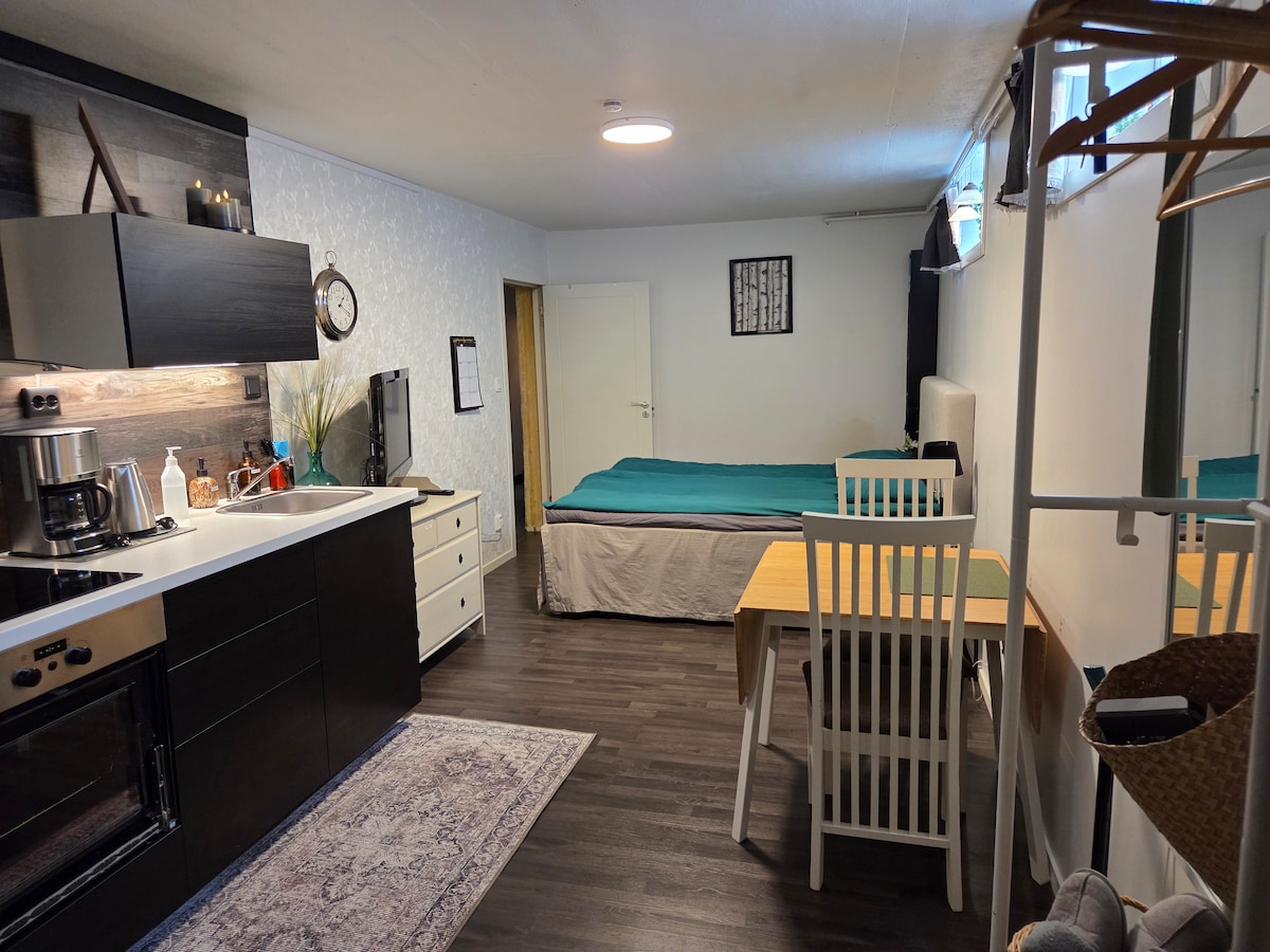 Mysigt gästhus i Laxforsen. Bara 10 min med bil från Kiruna centrum och 5 km från Jukkasjärvi och Icehotel. Stugan är lämplig för 1-2 personer och har alla bekvämligheter som behövs. Till exempel en 140 cm säng, ett kök med två kokplattor, basutrustning och mikrovågsugn, matplats för två personer och ett badrum med dusch och tillhörande bastu. Stugan ligger i direkt anslutning till skogen vilket gör att vid klart väder finns goda chanser för norrsken precis utanför dörren under vintersäsongen!
