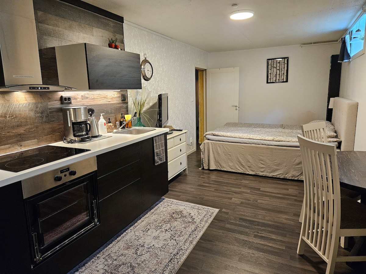 En mysig enklare lägenhet med bra förbindelser med buss. 3 km till centrum, 600 meter till stormarknadsområde med matbutiker. Lägenheten är utrustad med ett kokskåp. Dusch och bastu finns tillgängligt i närliggande byggnad. Parkering för ett fordon ingår, det är en parkeringsplats med motorvärmare ansluten till lägenheten. Husdjur är tillåtna i lägenheten, 100 meter från lägenhet finns en stor hundrastgård i grönområde. I lägenheten ingår även sänglinne och handdukar etc.