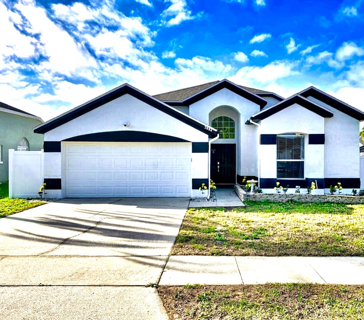 VILLA LUJOSA - BARRIO SÚPER HERMOSO POOL HEATER HOUSE - Diviértete con toda la familia en este alojamiento con estilo moderno , te encantará el área de picnic frente de la casa , el área de juegos y piscina con calentador , un espacioso lugar de hierba artificial para jugar tus niños y en una zona muy trankila cerca de los parques de Disney y del aereopuerto MCO . TE ENCANTARÁ LA CASA Local utility or county personnel may access exterior areas for maintenance without prior notice.