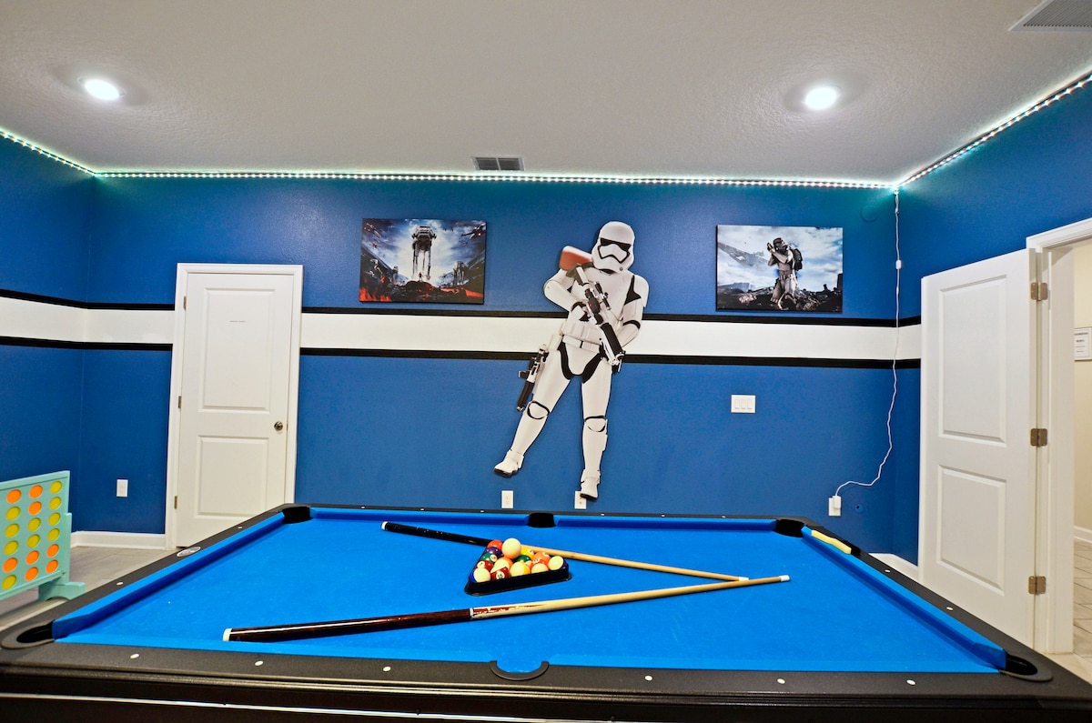 Welcome to your 3,400 sq ft luxury escape just minutes from Disney World! Perfect for families and friends, our villa sleeps 12 with ensuite bathrooms in every bedroom. Enjoy the home theater, game room, and a fully equipped kitchen—plenty of space to gather or relax. Close to shopping, dining, and all the Orlando magic. Book now for unforgettable memories in your private Disney-area villa.