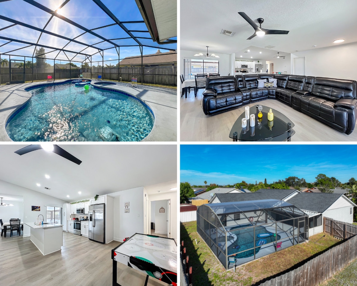 Welcome to your Orlando Area retreat, offering space, comfort, and year-round relaxation for families and groups. - Sleeps 10 | 4 bedrooms | 7 beds | 3 baths - Private pool & spa (year-round, heating w/ an additional fee) - Air-conditioned game room w/ ping pong & pool table - Crib, Pack n play & family-ready features - Kitchen & outdoor BBQ - Pet-friendly