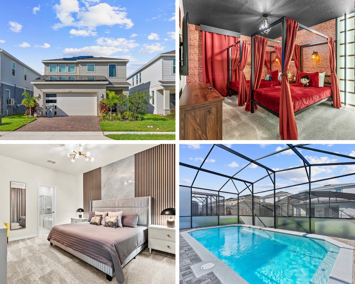 Welcome to your Disney-themed getaway - perfect for families & groups looking to relax and play just minutes from the parks! - Sleeps 14 | 6 bedrooms | 9 beds | 5 baths - Private pool & hot tub - open year-round, 24/7 - Themed rooms + game room & arcade entertainment - Super Mario loft w/ Xbox & gaming setup - Resort access: lazy river, pool & mini golf - Fully equipped kitchen, BBQ grill & outdoor dining
