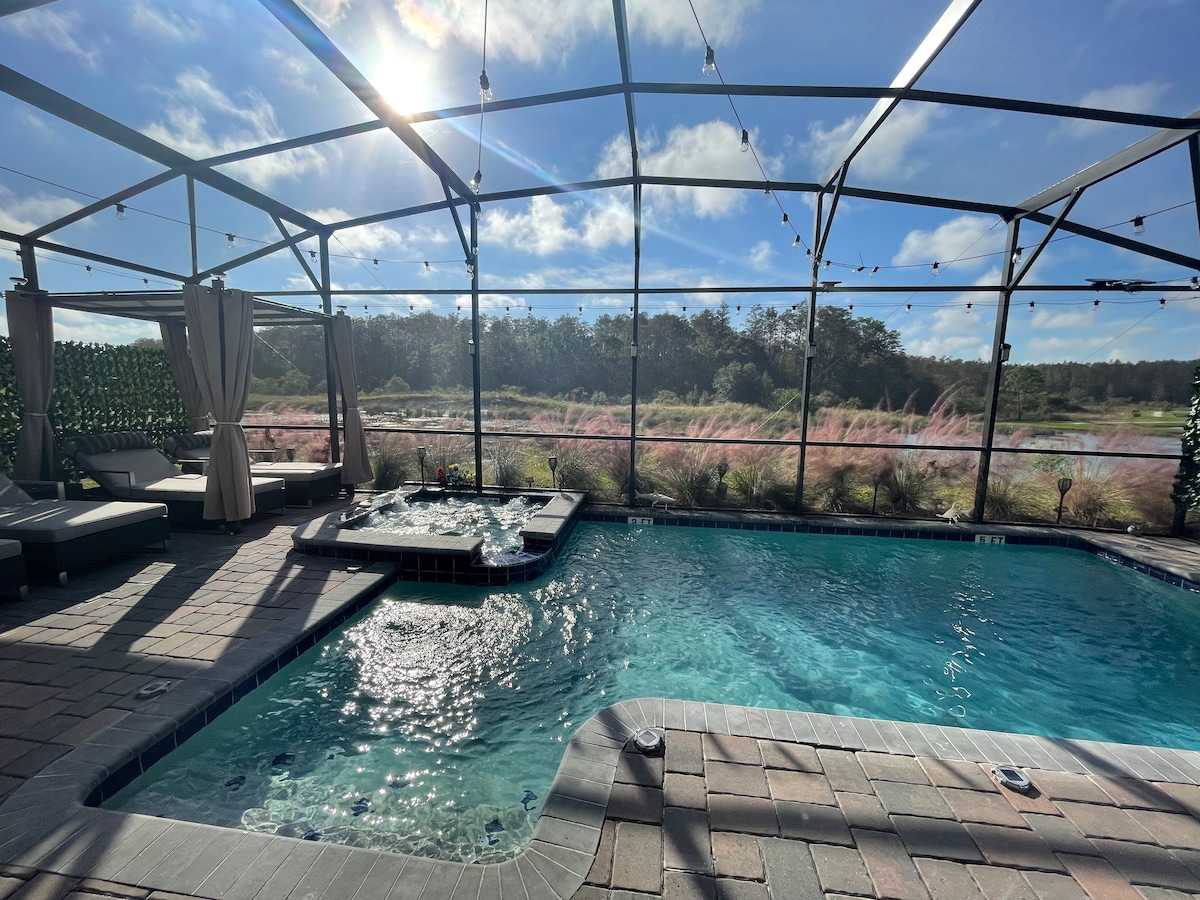 Make memories to last a lifetime in our luxurious seven-bedroom home (sleeps 21) at Orlando's premier vacation community. Enjoy your own Batman cave game room, private pool (heated at no extra charge*), and hot tub. Our 100% Five-Star rating from previous guests and our generous cancellation policy means you can book with confidence. Only 15 minutes to Disney and a short walk to a fabulous resort clubhouse with free access to a lavish pool, kids waterpark, restaurant, playground, gym, and more!