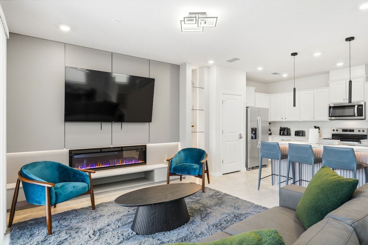 Amazing Brand New Modern Luxurious Home at Encore Resort Reunion. PET-FRIENDLY & Minutes to all Theme Parks. BRAND NEW HOME. Private Pool & Spa / Game Room / Movie Theater / Gym / Massage Chair / Fireplace / PS5 / Board Games & Much More. Embrace the extraordinary and book your stay at our home, where luxury, entertainment come together for an unforgettable vacation experience. ** Please review the rules before booking. Waterpark access is not included. **