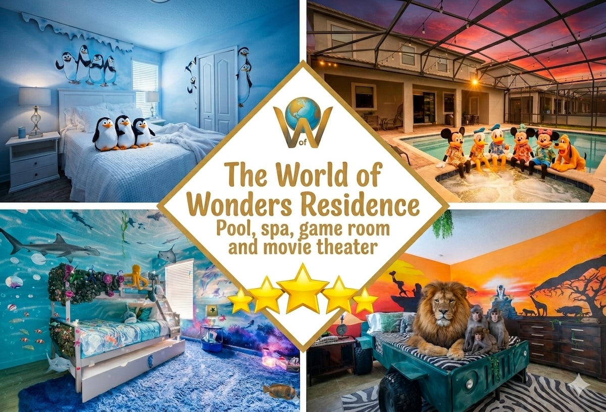 免费温水泳池!5卧室迪士尼别墅,主题+游戏