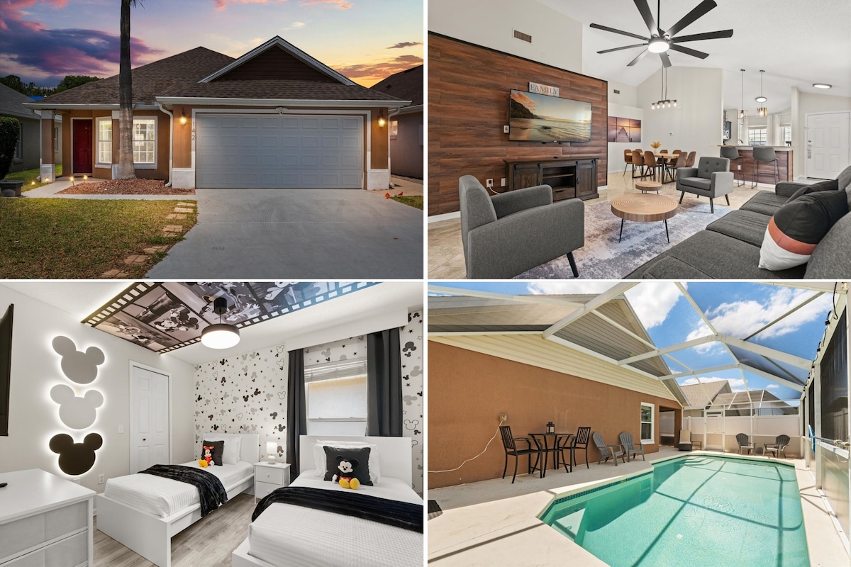 Welcome to "Manor on Knottingham," nestled in the heart of Four Corners. The rustic charm, adorned with vintage Disney-inspired decor, transports guests to a bygone era of beloved characters and timeless tales. Outside, enjoy the sparkling blue pool and warm summer weather. A great place for family and friends. "Manor on. Knottingham" promises an extraordinary stay, where the magic of Disney and the comfort of a home merge into an unforgettable experience.