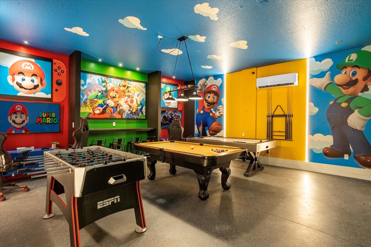 温水泳池,距离迪士尼15分钟车程,配备PS5 l Switch