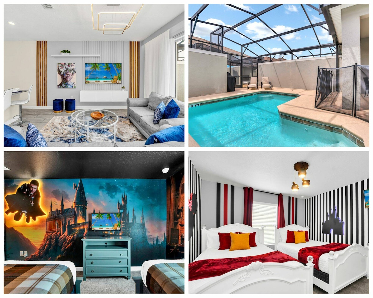 Bask in the beautiful Florida sunshine in this FULLY RENOVATED DESIGNER HOME in the famous REGAL OAKS RESORT w/ THEMED BR near DISNEY WORLD in ORLANDO! Enjoy PRIVATE JACUZZI, NEW STYLISH FURNITURE, HEATED POOL, Waterslides, Poolside Bar, GAME ROOM, BILLIARD TABLES, Ping Pong, Restaurant, GYM, Tennis Court, and 24/7 Security Guard! The VILLA is located: 5 min walk to Old Town Amusement Park and World Food Trucks. 8 min drive to DISNEY, 20 min UNIVERSAL STUDIOS, 15 min SEAWORLD & DISNEY SPRINGS.
