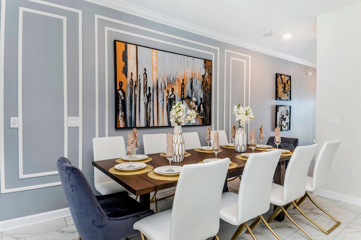 Discover magic at our Kissimmee villa, minutes from Disneyworld in Storey Lake! With luxury decor and fun-filled bedrooms, our home offers enough comfort and fun for the whole family. Take the fun and relaxation out to the private pool in the home. And when you want to take it to the next level, visit the resort clubhouses! Resort perks include lazy rivers, fast water slides, mini-golf, kayaking, jacuzzis, a restaurant and more! Your dream Central Florida getaway begins here!