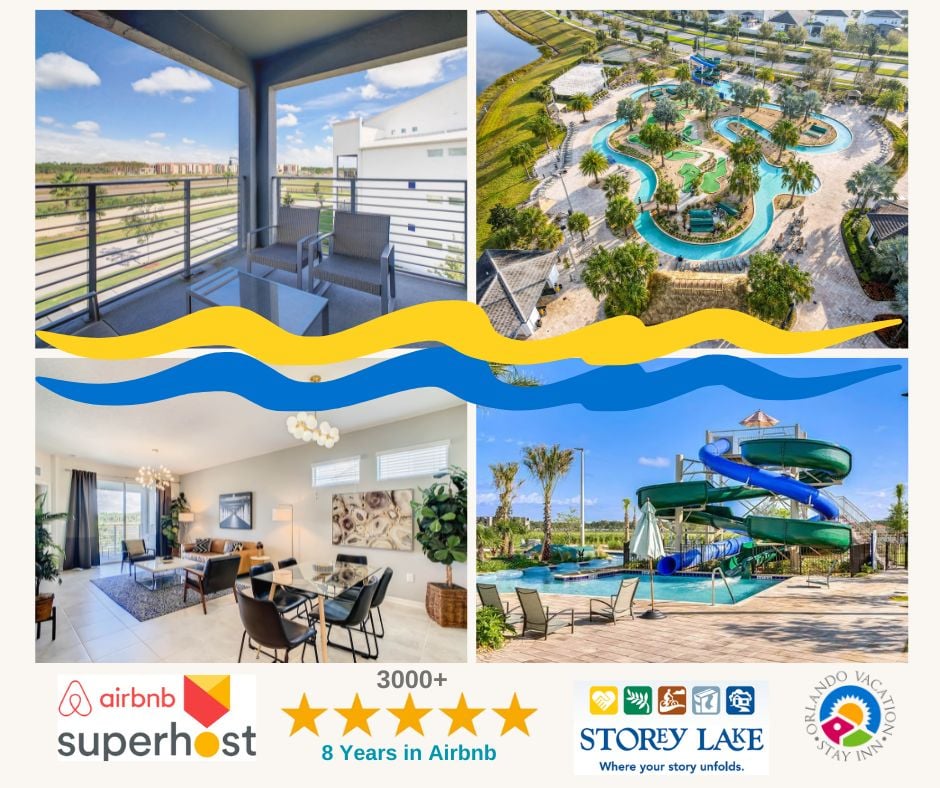 Minutes from Disney World Orlando Florida, Modern & Stylish 2bed/2bath fully equipped apartment for up to 7 guests, located in the family friendly Storey Lake Resort. FREE Clubhouse & WATERPARK amenities: Heated Pool, Hot Tub, Kids Splash Zone, Water Slides, Lazy River, Gym, Tiki Bar, Ice Cream Shop & more. The apt is located: 10 min drive to DISNEY, 25 min to UNIVERSAL STUDIOS, 18 min to SEA WORLD. FREE Parking. FREE Waterpark. No extra FEES. Gated Resort with Security 24/7 & Self check-in!