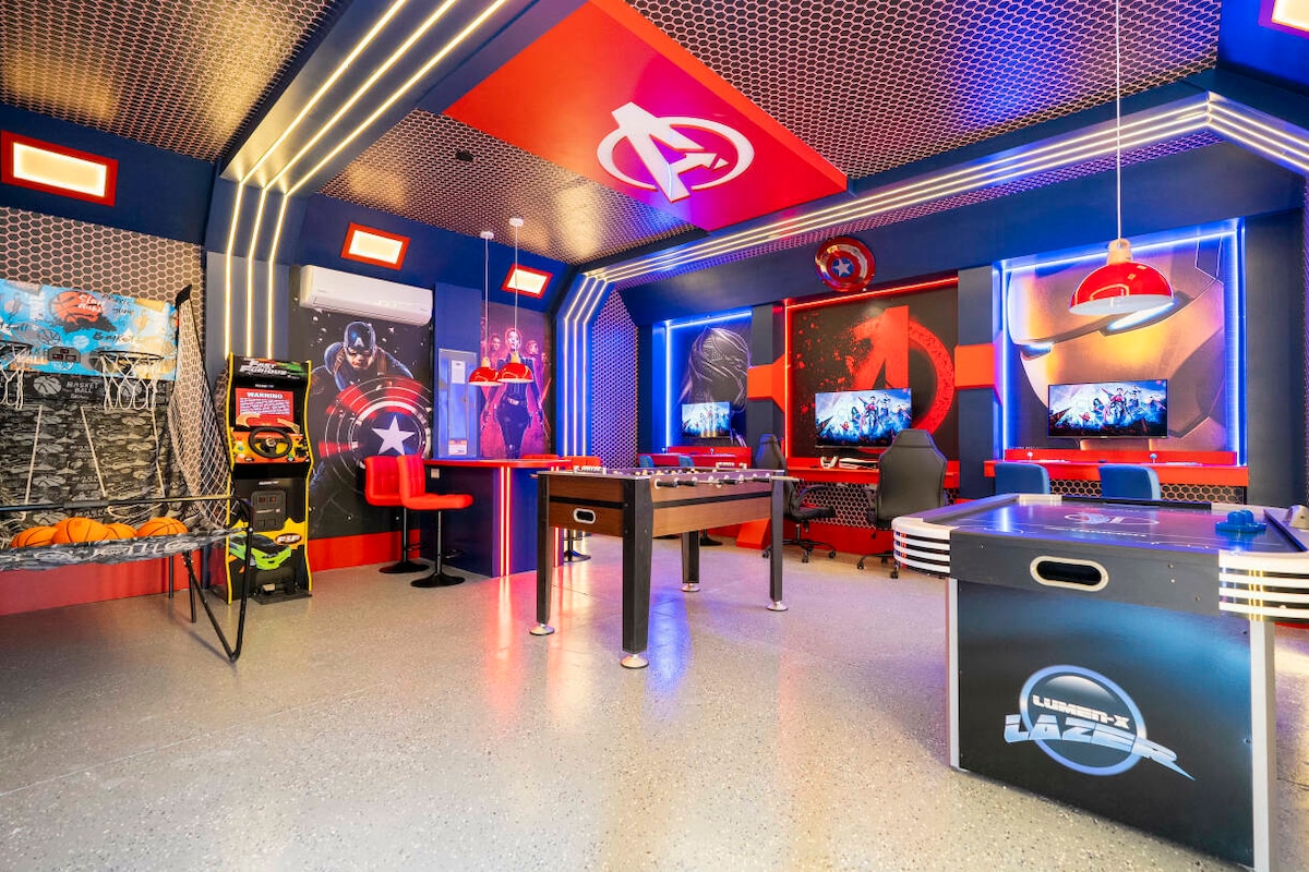 The perfect balance of STYLISH DESIGN, LUXURIOUS COMFORT, & ENDLESS ENTERTAINMENT, beautifully situated with stunning views in the sprawling 3.5 square mile Reunion Resort. You will have your own private pool, spillover spa, STAR WARS cinema-game room with pinball, classic arcade games, and karaoke, MARVEL kids room with tube slide and double bunks, the latest Xbox Series S, a sprawling 2000 ft2 pool deck, fire pit, and even a HARRY POTTER cupboard hidden under the stairs, minutes to Disney.