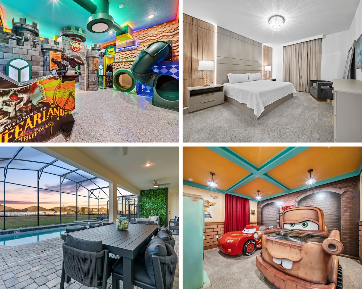 靠近迪士尼|加热泳池、特大号床、街机
