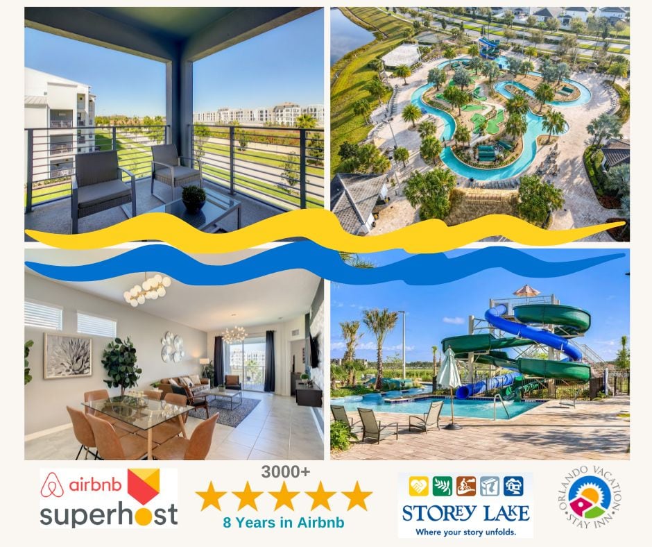 Minutes from Disney World Orlando Florida, Modern & Stylish 2bed/2bath fully equipped apartment for up to 6 guests, located in the family friendly Storey Lake Resort. FREE Clubhouse & WATERPARK amenities: Heated Pool, Hot Tub, Kids Splash Zone, Water Slides, Lazy River, Gym, Tiki Bar, Ice Cream Shop & more. The apt is located: 10 min drive to DISNEY, 25 min to UNIVERSAL STUDIOS, 18 min to SEA WORLD. FREE Parking. FREE Waterpark. No extra FEES. Gated Resort with Security 24/7 & Self check-in!