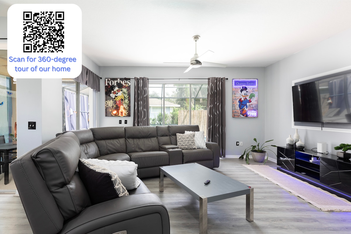 Our charming, pet-friendly home is located in the prime area of Kissimmee, Florida. Your family will be close to Disney parks, restaurants, Old Town, and Downtown Disney. Just bring your bag—we have everything you need! Settle into our fully equipped home, thoughtfully designed to create lasting memories with family and friends. Enjoy the Florida weather by cooling off in our open-air pool or grilling by the poolside lounges. Relax in our airy bedrooms, including Mickey and Minnie themed rooms!