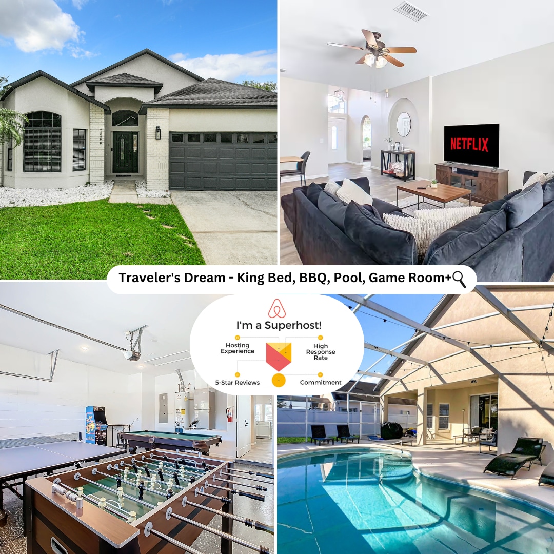 迪士尼度假屋|烧烤、特大号床、泳池、游戏室+