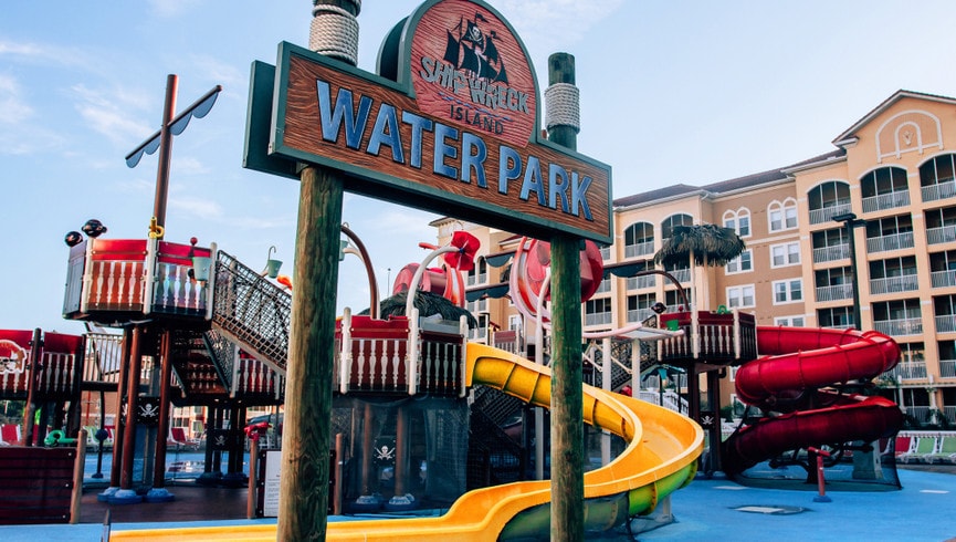 Property is located just a mile from Walt Disney World. Start with 14 heated outdoor swimming pools and hot tubs, arcade, paddle boats, a Disney movie theater, miniature golf, playgrounds, tennis, basketball, sand volleyball, a fitness center, and scheduled activities. Ship Wreck Island water park featuring multiple slides, tunnel slides, fountains, play areas and a lazy river is available for $25 dollars a day per person.