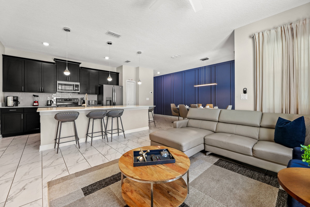 Close to Disney! Stunning *New 3 bedroom/ 3 bath home located inside the Luxury community of Margaritaville. This private oasis is centrally Located, few minutes away from the parks and restaurants. Sunset Walk is located next to the resort and it has more shopping, restaurants, Dine-in Lux Theater, & entertainment, including "Estefan Kitchen" by Gloria Estefan. While you unwind & relax, kids will love the new spectacular waterpark, Island H2O Live. Welcome to your island adventure!