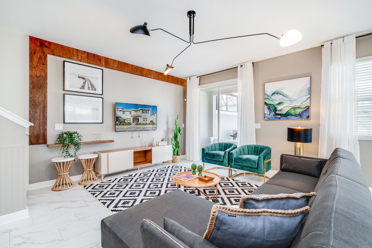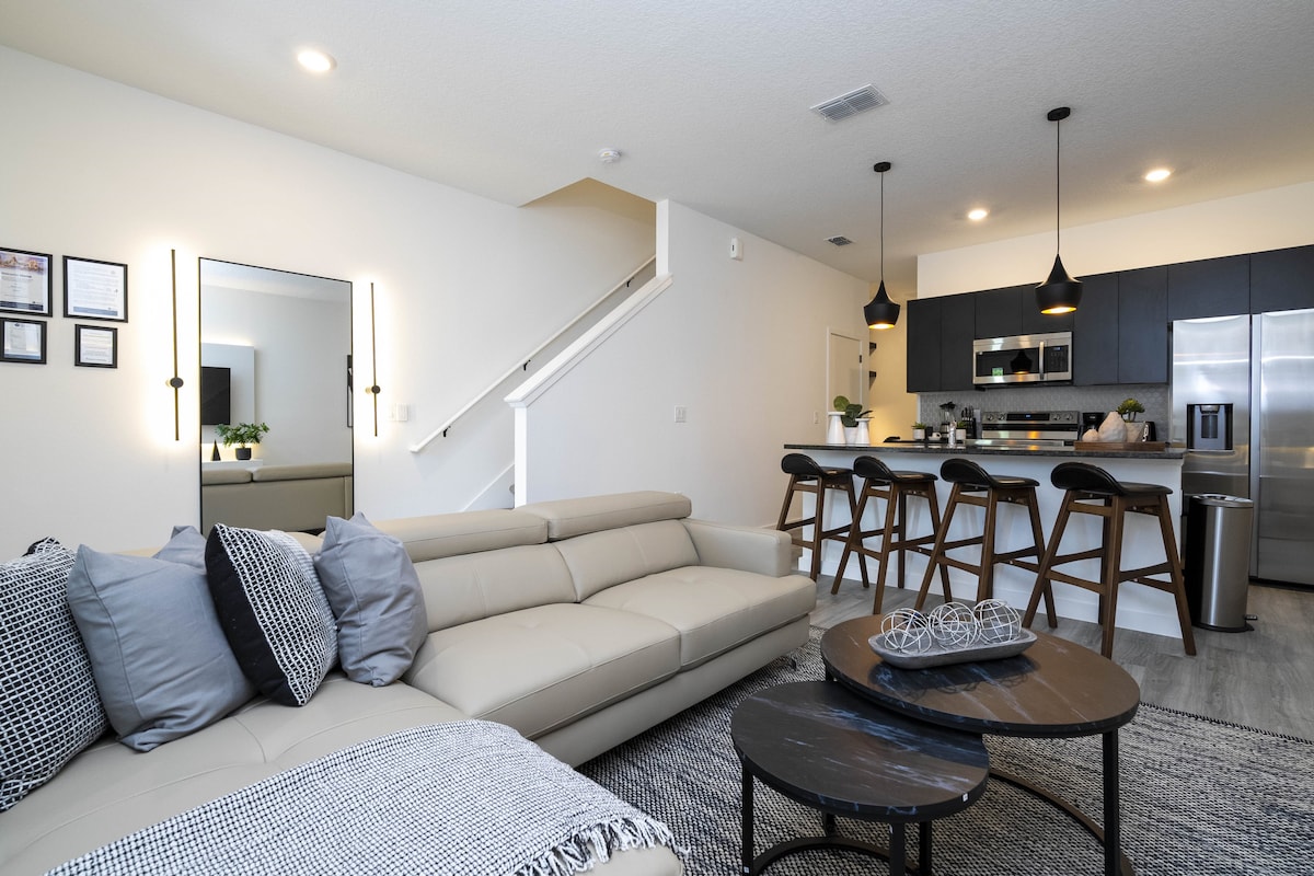 This NEWLY renovated and beautifully decorated home-away-from-home is perfectly located 5 miles from Walt Disney World® Resort. Relax in your private heated plunge pool and make yourself at home in this upscale townhouse. With hardwood floors throughout the entire townhouse and a modern flare, this 3-bedroom, 3-bathroom home that sleeps up to a family of 8 will feel like an oasis.
