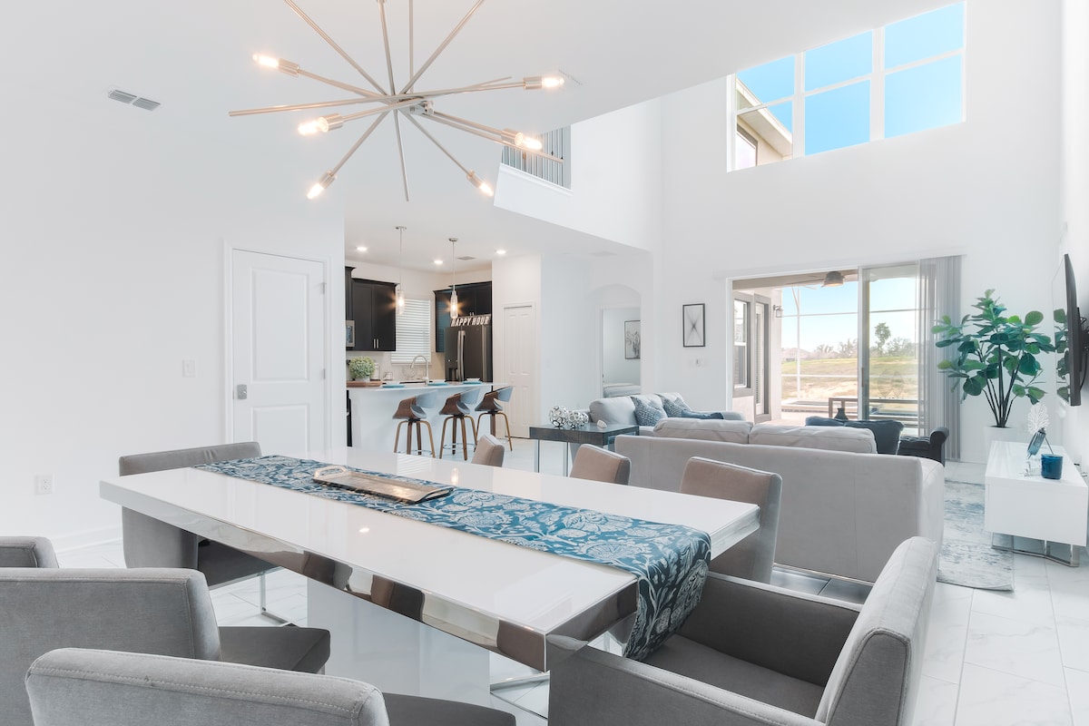 In the exclusive Lake Berkley Resort, this magical manor is a spacious 6 bedroom, 3.5 bathroom home with private pool & spectacular lake views. A 10 minute drive to Disney World, 15 minutes to Sea World and 20 minutes to Universal’s Wizarding World of Harry Potter. Ensure an immersive experience at this thematic home, perfect for families & groups of friends looking to cook in the well stocked kitchen, enjoy meals together in Great Hall or patio by the pool and watch movies & more in the Common