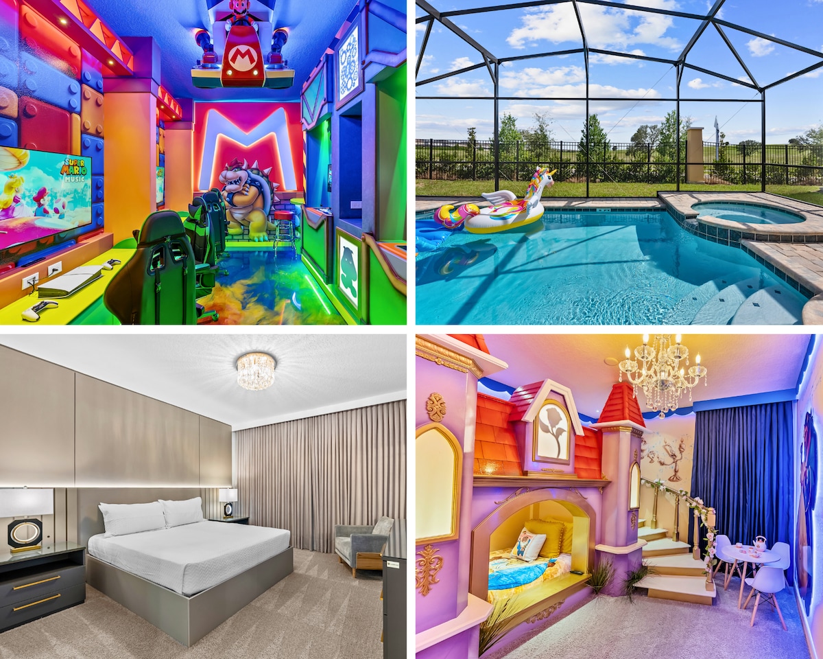 温水泳池,距离迪士尼15分钟车程,配备PS5 l Switch