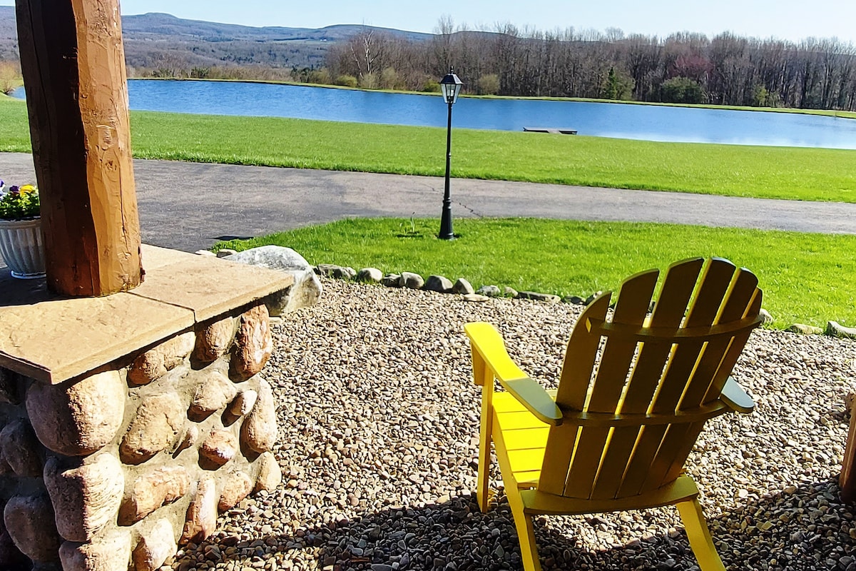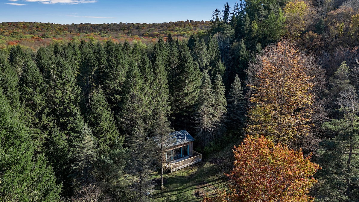 Family built cabin on 30 acre country estate, just outside exciting year round resort village of Ellicottville. Perfect for nature lovers and outdoor enthusiasts, the cabin has all necessities, similar to a tiny house. Nestled near the gardens, and surrounded by quiet rolling hills. Enjoy with door step delivered breakfast, or book a guided hike with estate owner and learn about medicinal plants and flowers, the topography of the land and a farm fresh picnic lunch on the peninsula of our lake.