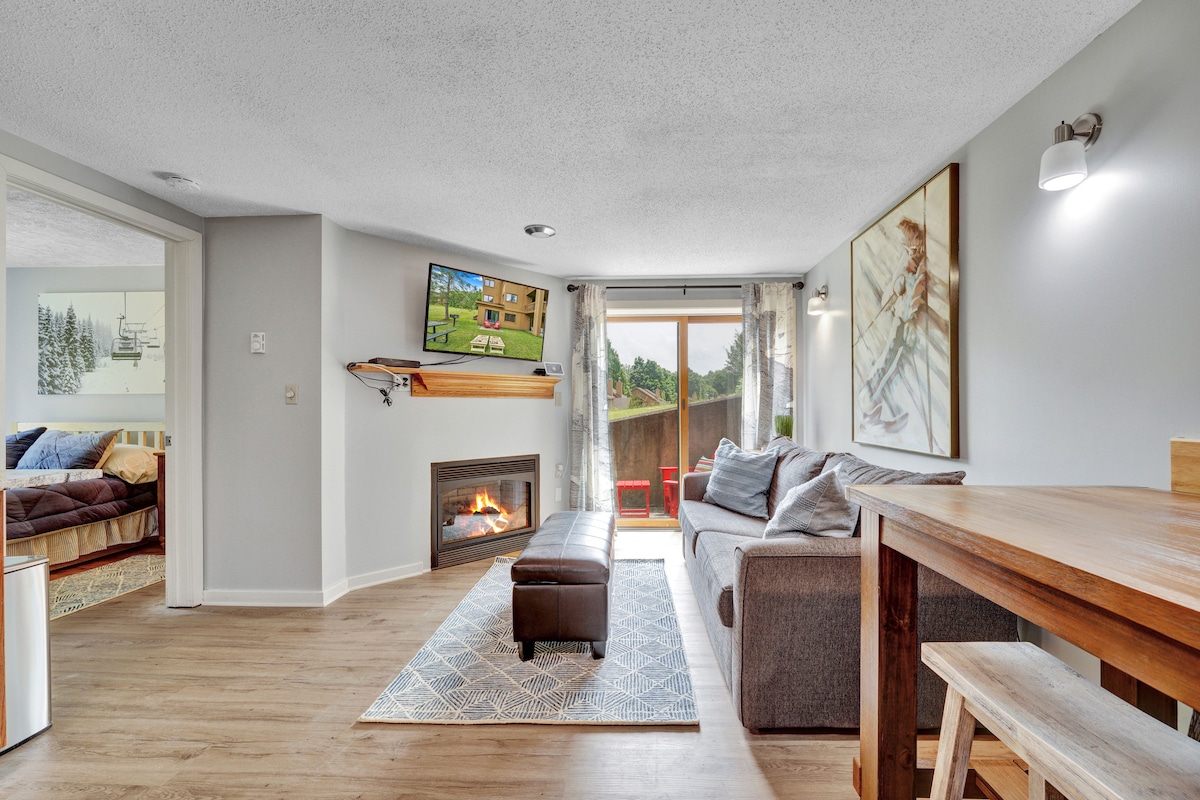滑雪进出公寓,加大双人床+壁炉