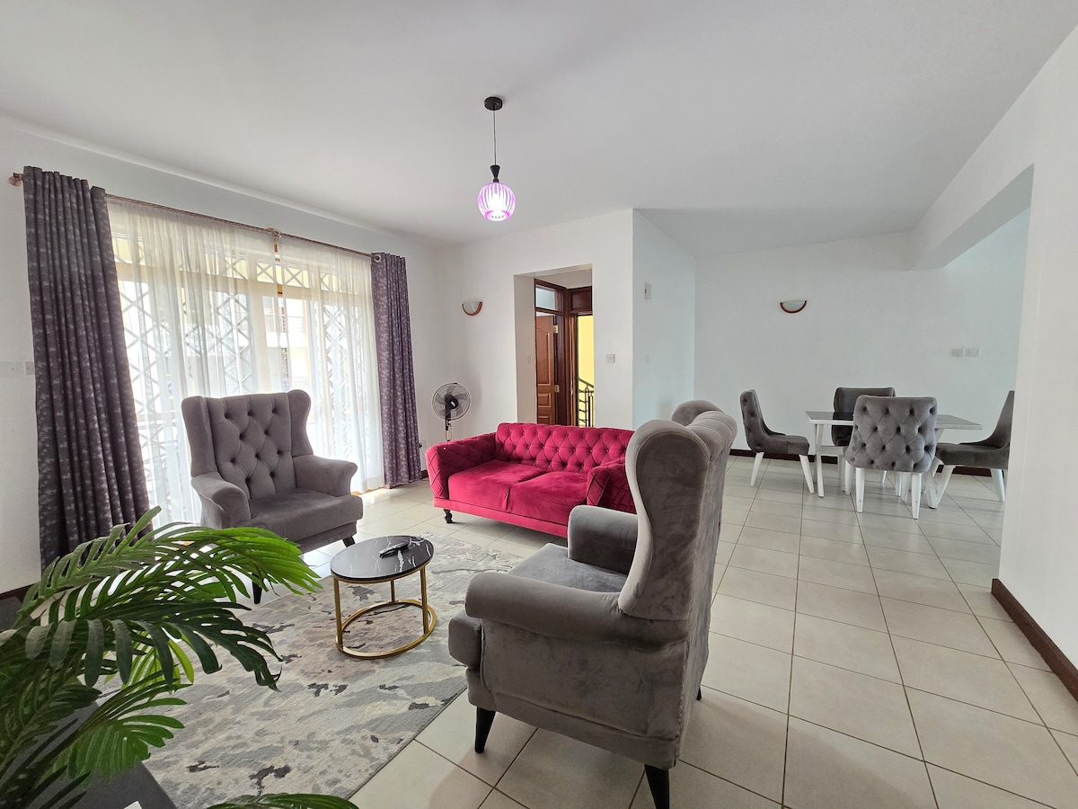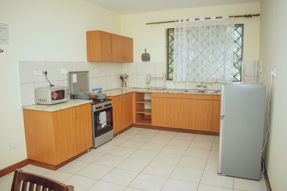 **Located in a central serene environment in Milimani Kisumu. ** Easily accessible by tuktuks, motorcycle, ubers, right off ring road. ** Beautiful all ensuite bedrooms with an extra clock room. ** Located on the 2nd floor accessible by well spaced stairs. ** Safe and well secured environment with 24 hr friendly and professional security. ** Well equipped with necessary equipment including fridge, fan, dispenser, microwave, hot showers, iron board and box, Wi-Fi.