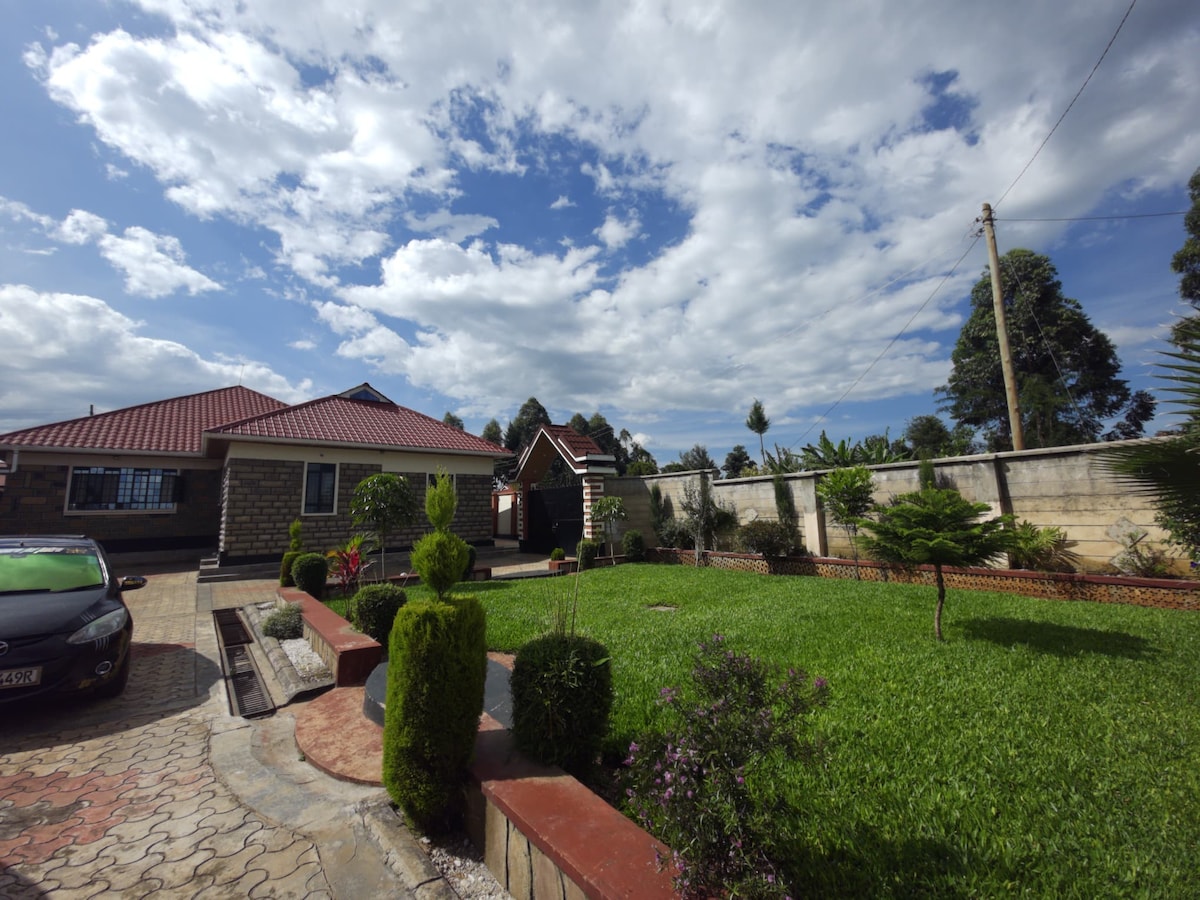 Enjoy this stylish and peaceful family home located about 15 minutes from Kericho town. Cosy living room with a 55-inch TV for your entertainment. Wifi available. Open-plan kitchen with all the necessary appliances. Two spacious bedrooms, one is master ensuite with a king size bed and the other has two single beds. Washing machine available. Private, tranquil and well-maintained outdoor space to relax and unwind while you listen to the birds chirping!