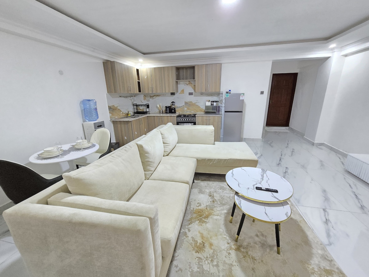 Two-bedroom apartment in a serene and secure neighborhood of Kisumu. It is conveniently located within walking distance to public transport, shopping malls, markets, and places of worship. Tastefully furnished for your comfort with a maximum capacity of five people; it is the perfect place to stay on holiday or business, for family or individual trips, short or long-stays.