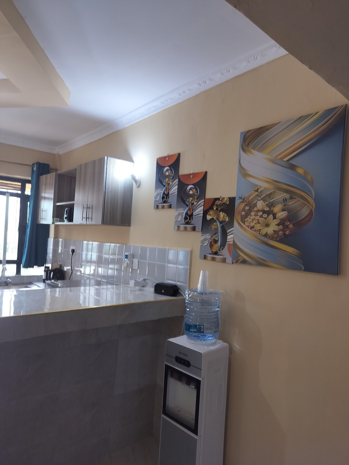 **Located in a central serene environment in Milimani Kisumu. ** Easily accessible by tuktuks, motorcycle, ubers, right off ring road. ** Beautiful all ensuite bedrooms with an extra clock room. ** Located on the 2nd floor accessible by well spaced stairs. ** Safe and well secured environment with 24 hr friendly and professional security. ** Well equipped with necessary equipment including fridge, fan, dispenser, microwave, hot showers, iron board and box, Wi-Fi.