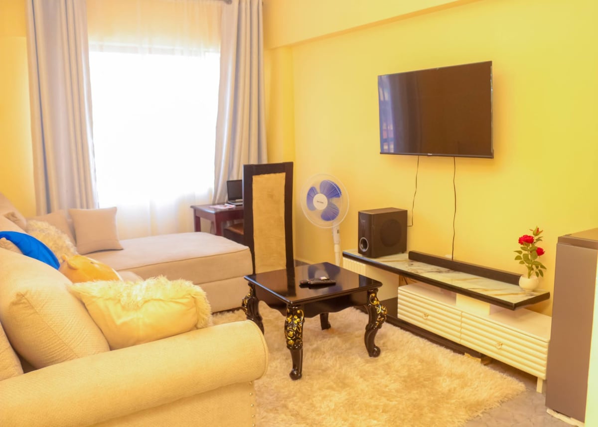 🔹Beautifully furnished 1 bedroom apartment in milimani Ksm 🔹The bedroom is master en suite with 6 by 6 king bed. 🔹Fully equipped kitchen with modern kitchen wares 🔹High speed internet 🔹55' (4k UHD) Smart tv 🔹Hot shower 🚿 🔹Toiletries and clean white linens are provided 🔹Netflix available 🔹The apartment is at the 1st floor and is accessible by stairs. 🔹Clean white beddings 🔹Good security 🔹Ample parking 🔹 🔹3min drive to Ksm CBD