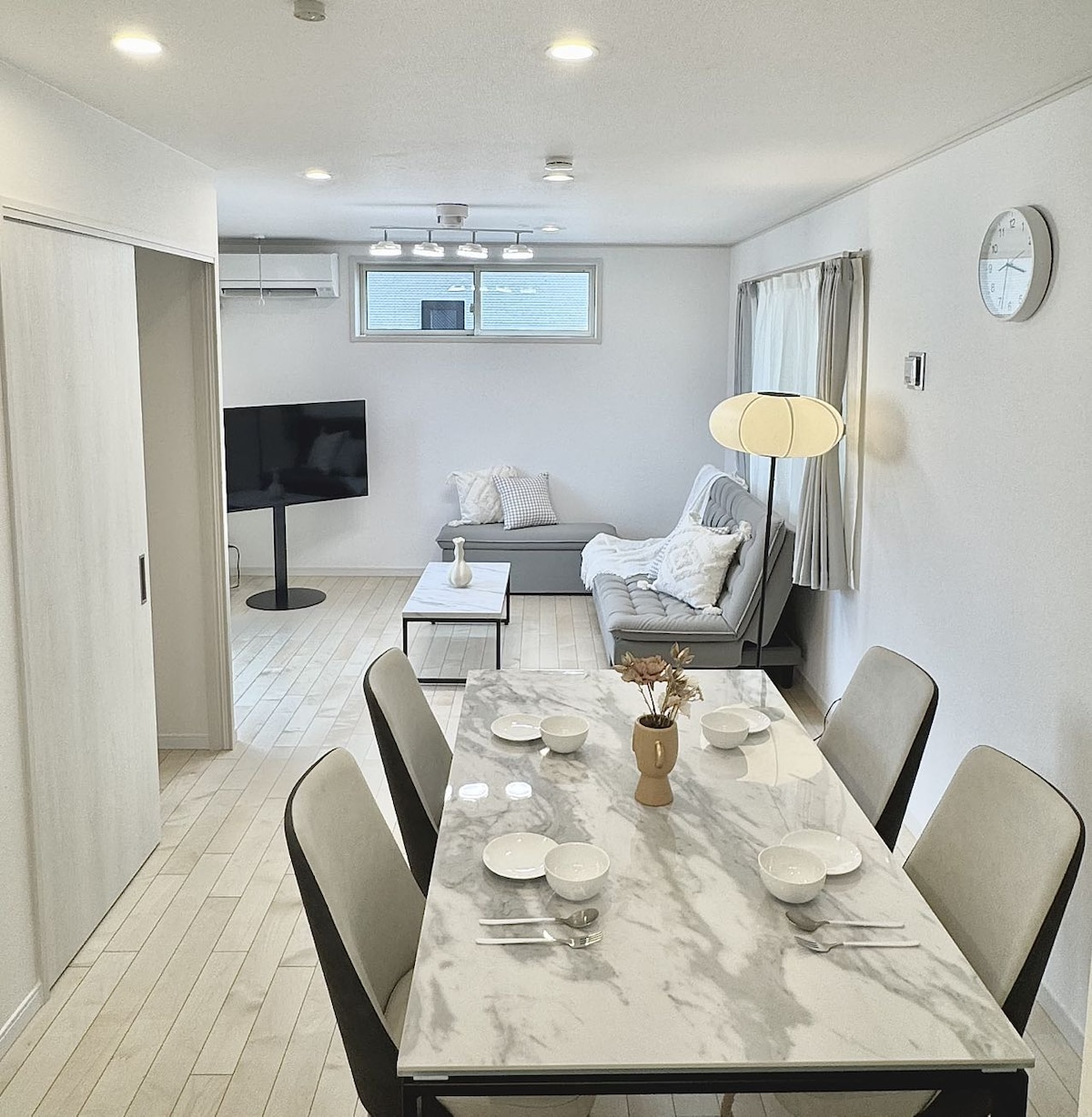 本物件は、JR「東十条駅」南口から徒歩3分という抜群のロケーションにあり、通勤・観光のどちらにも大変便利です。 都心へのアクセスも良好で、初めて東京を訪れる方でも安心してご利用いただけます。周辺にはコンビニエンスストア、公園、寺院が点在し、落ち着いた住宅街ならではの静かな環境も魅力のひとつです。 室内は99㎡の広々とした空間を贅沢に使った、新築の一戸建て貸切宿。 開放感のある間取りで、グループやご家族でもゆったりと快適にお過ごしいただけます。複数の寝室とくつろげるリビングを備えており、団体での滞在や長期利用にも最適です。 新しい建物ならではの清潔感と快適さを兼ね備え、旅の疲れをしっかりと癒していただけます。 空港(羽田空港)からも約25 km。深夜・早朝の移動にも比較的安心です。 利便性・広さ・快適さの三拍子が揃った本物件は、東京滞在の拠点として自信をもっておすすめできる宿泊施設です。