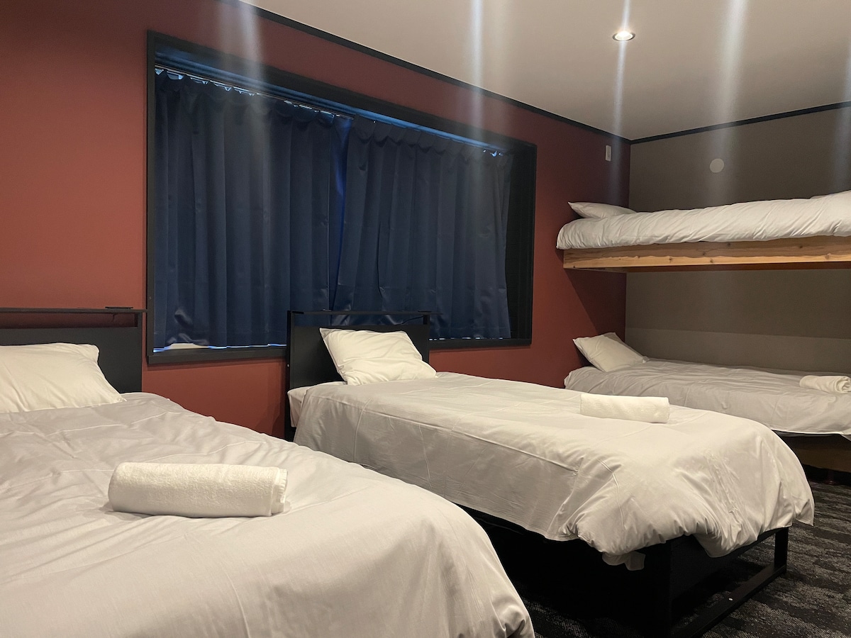 Welcome to Ember Lodge! Nestled 100m from the family friendly Goryu slopes & advanced terrain@47, our lodge offers warm rooms & inviting atmosphere. Floor heating, dry room & high-speed wifi. Perfect for families and groups. Easy access to all mountains in the valley via close 100m away shuttle. A cozy 6 bed (2 bunks, 2 singles) family room with ensuite bathroom. 12/1 - 3/31 breakfast included. [Group Bookings 7+] Get in touch! Other rooms are listed in our profile!