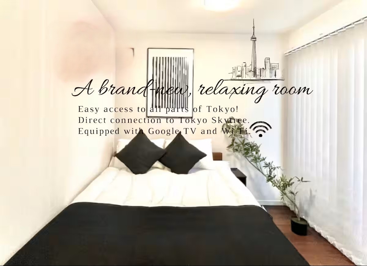 スカイツリーを望む好立地✨ JR「錦糸町」駅徒歩8分、地下鉄「押上」駅徒歩11分 空港アクセスも良く、観光にもビジネスにも最適な宿泊スペースです。 ご家族やご友人同士でのご利用にもぴったり。 🚿 バス・トイレはセパレートで、洗面台も完備されており、快適にお過ごしいただけます。 洗濯後の乾燥機がお部屋に備えつけられています ❄️ 小型冷蔵庫もご用意しておりますので、簡単な食品の保管にも便利です。 🛗エレベーターがございます。 セルフ荷物ロックサービスで、チェックイン前、 チェックアウト後に、無料で荷物を保管することができます 近隣にはコンビニや飲食店も多数あり、スカイツリーや押上、浅草エリアへのアクセスが抜群! JRで一駅で両国、新宿まで直通、浅草、渋谷、銀座へも地下鉄で直通でアクセス出来ます。 ⭐️3人定員です