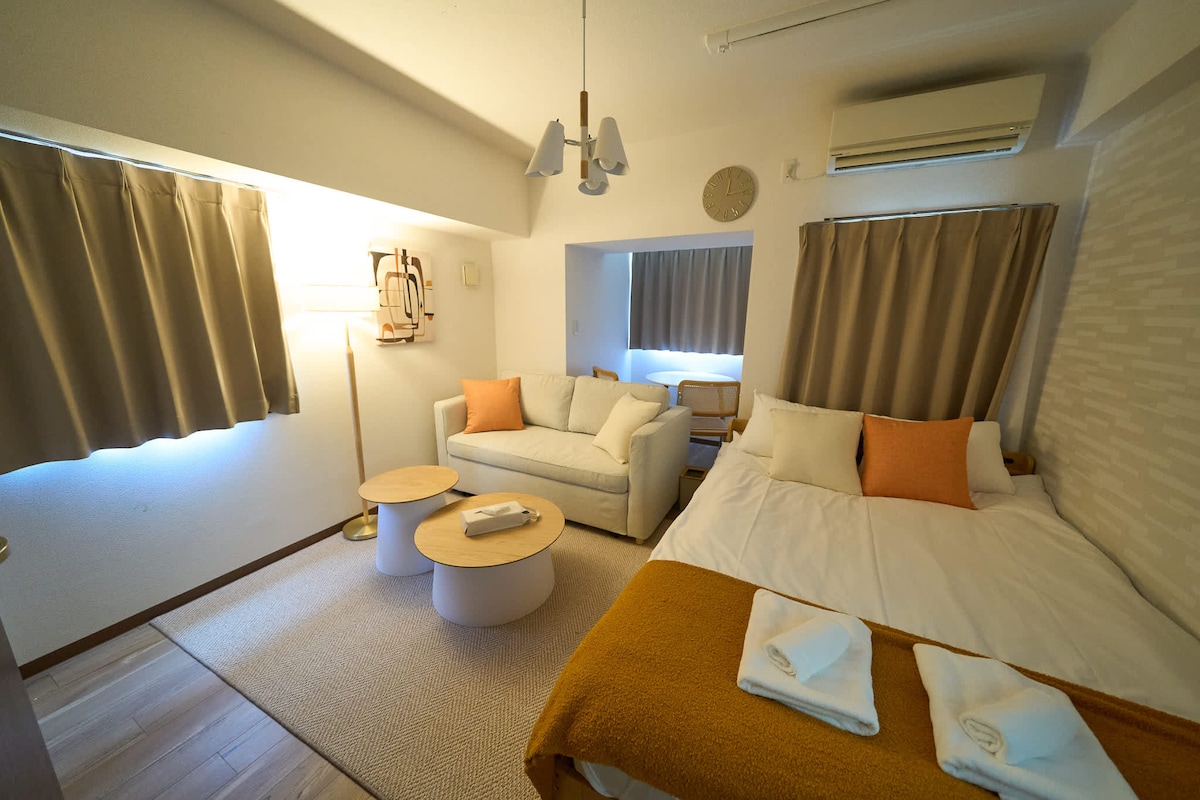[2ベッド/最大4名様] ■空港アクセスについて 羽田空港から北千住駅までは直通バスがあり、1本で到着します。 羽田空港→リムジンバス北千住駅行→北千住駅→当施設:約60分 ■最寄り駅🚄 北千住駅 徒歩8分 アクセス抜群の好立地✨ 北千住駅は、多路線利用可能(JR・東京メトロ・つくばエクスプレス・東武・日比谷線など)により観光地や都心へのアクセスが抜群! ■POINT💡 北千住駅から徒歩8分の位置にある、メゾネットタイプの2Fのお部屋です。 整った空間で、まるで自宅のようにくつろいでいただけます。 伝統的な日本の住まいの雰囲気を感じながら、快適にお過ごしください。 周辺にはレストラン、ショッピング施設が充実。 電車やバスで東京各地へアクセスしやすく、観光にもビジネスにも便利な立地です。 ナイトライフが賑やかなエリアにありながら、宿は静かで安心してお休みいただけます。 室内にはキッチン家電や調理器具など、必要な設備をすべて完備。 2~4名程度のご家族やグループにおすすめです。 隣には有料駐車場もあり、お車でお越しの際も安心です。