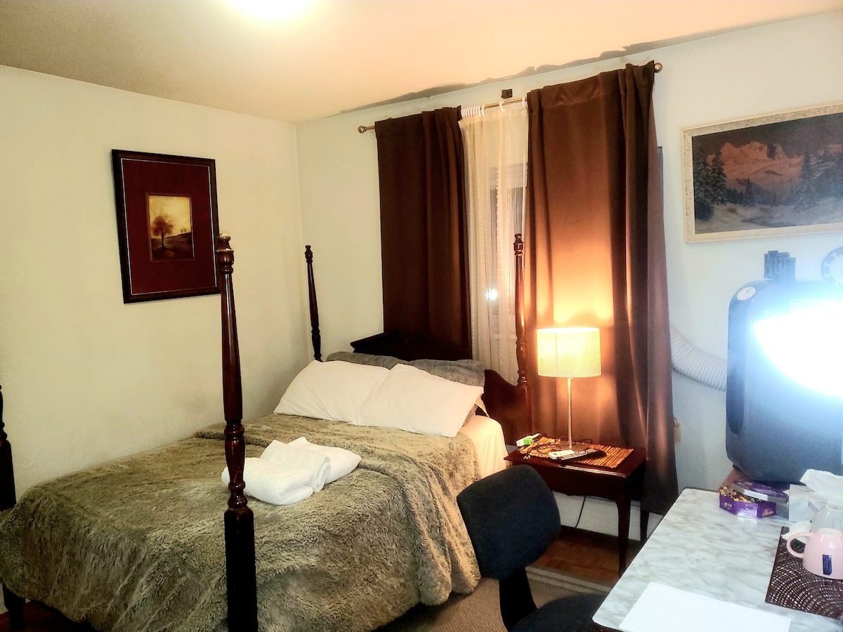 Our home is in the country side but not limited to grocery,parks..etc.. The 401 & 403 exits are 10 mins away. Guelph University and downtown Guelph is also10 to 15 mins away. Its a shared home we live here also have 2 small dogs in case anyone allergic.They will not be in your space if that's going to be a concern. It's a separate entrance and room for a vehicle for parking. The laundry is not shared but I'm willing to accommodate if necessary. The apartment is an in-law sweet.