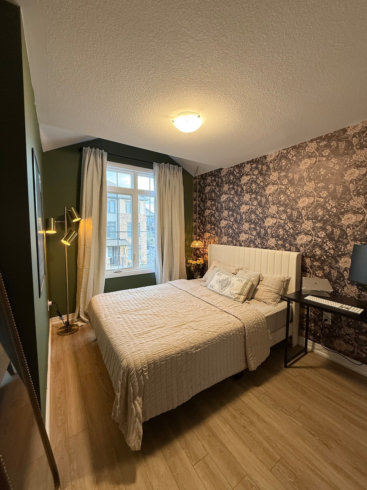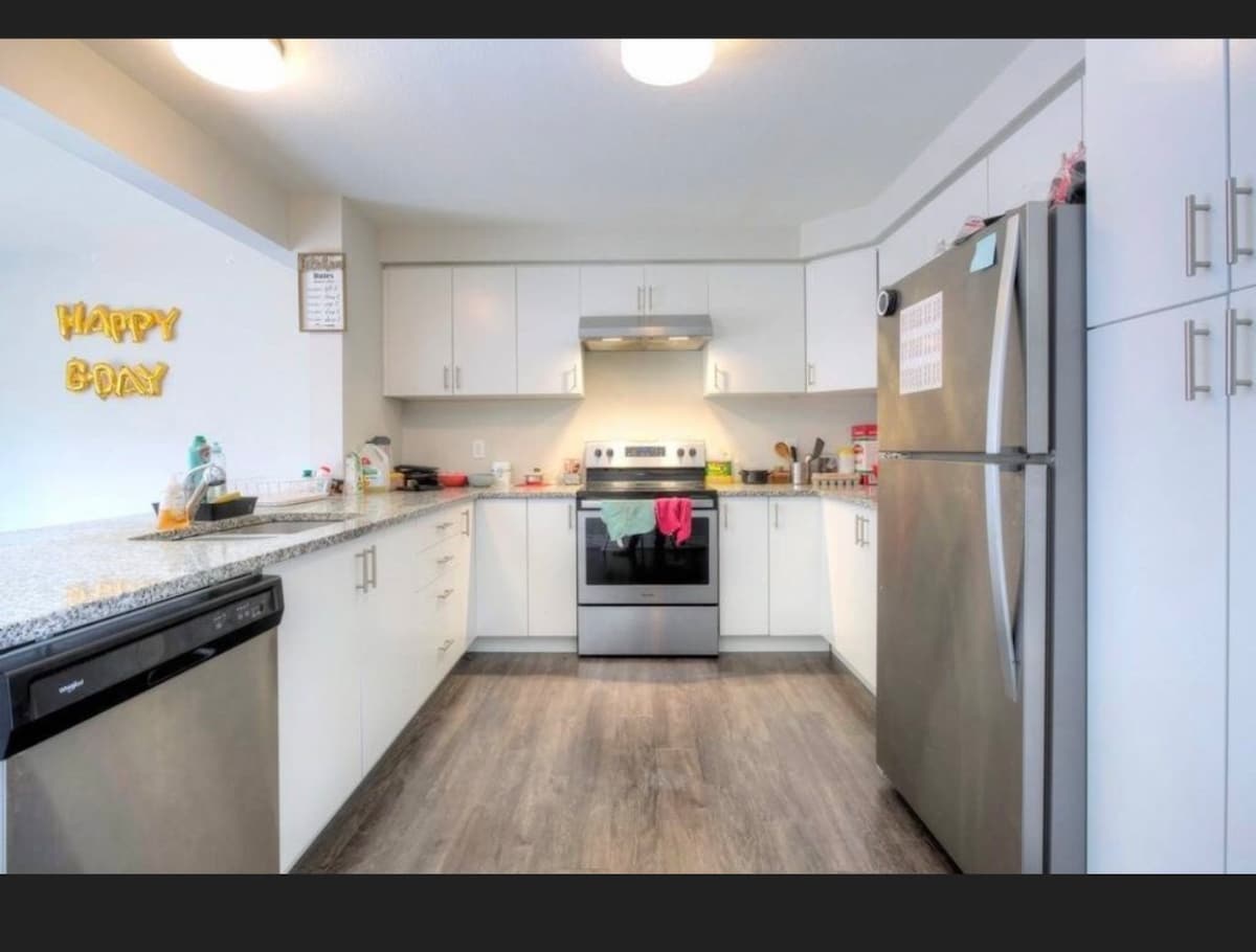 Welcome to our stylish and modern retreat, centrally located just minutes from UW, Laurier, and The Boardwalk’s shopping, dining, and amenities. Enjoy the convenience of a spacious master bedroom with a dedicated workspace, perfect for students or professionals. Experience seamless living with smart home features, including automated blinds that close 45 minutes before sunset, ensuring your privacy. Ideal for those who value comfort, luxury, and proximity to everything you need.
