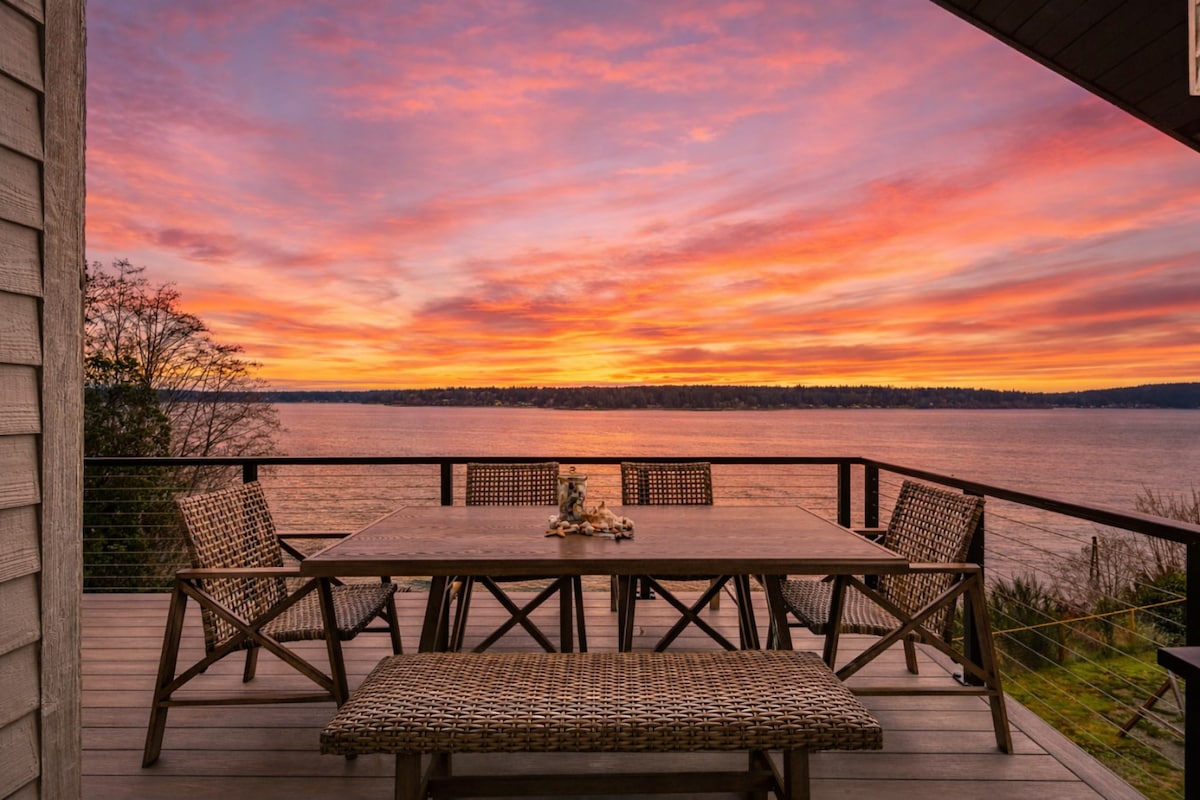 Remodeled home with spectacular views of the Olympic Mountains & Salish Sea. You’ll enjoy gorgeous decks, outdoor sauna, and lavender garden. Terrific central location just 9-minutes to Seattle Ferry, 2 minutes to Lions Park with boat launch. Near artsy browsing charm of Manette, and all the modern shopping convenience of Silverdale. Great jumping off point for exploring the Olympic Peninsula: National Parks, Hood Canal, mountains, beaches, with remarkable hiking, boating, and Pacific NW food.