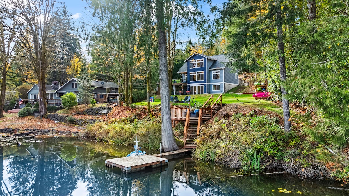 Enjoy the waterfront view by the woodstove, or roast s’mores & absorb the tranquility at the gas firepit on the spacious deck. A perfect cozy winter retreat, you are right on the low bank waterfront of a private lagoon, & the Hood Canal, surrounded by woods. Outdoor amenities abound, with a pickleball court, 2 paddleboards, rowboat, & firepits at the beach & lagoon. Enjoy a scenic 1 hour drive to Olympic National Park, or watch for porpoises, otters and the resident bald eagles from the couch.
